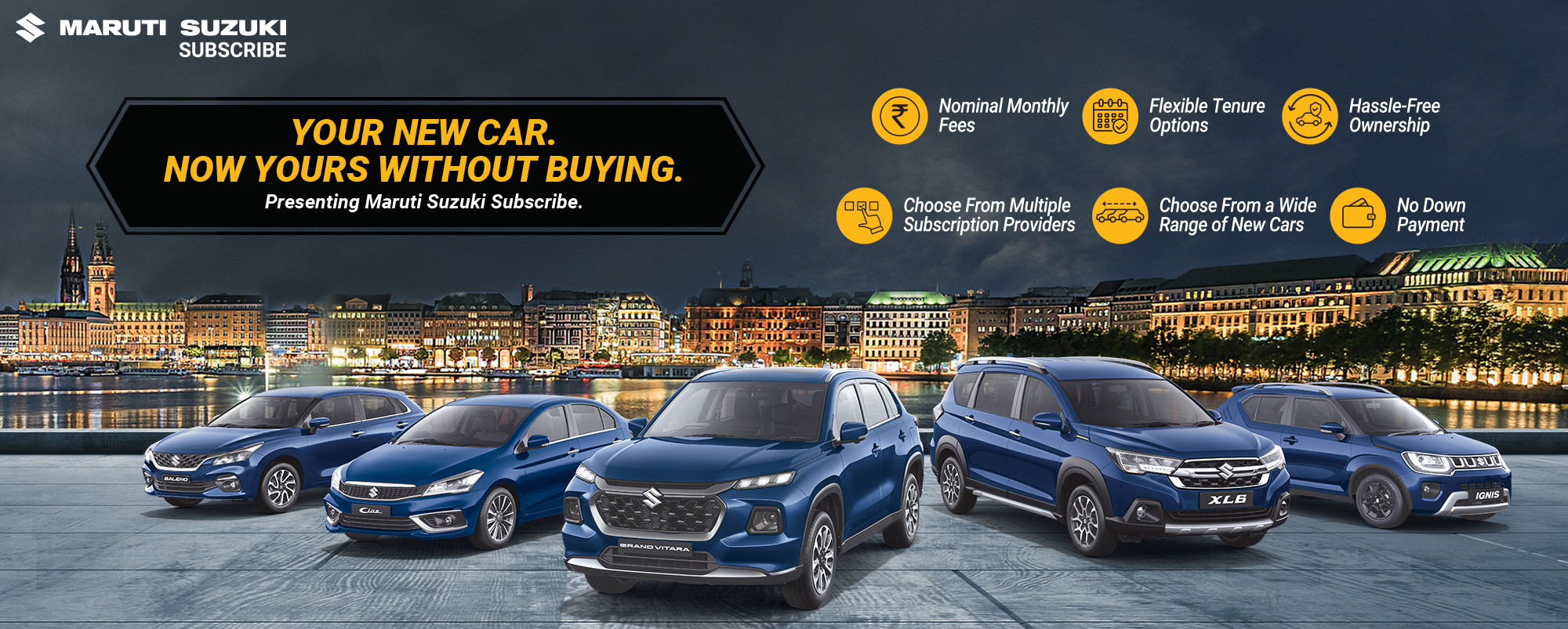 Maruti Suzuki Subscribe enables all customers to enjoy driving their preferred Maruti Suzuki cars without having to deal with all the financial responsibilities that come with owning a car.All you need to do is opt for a monthly subscription plan at a fixed monthly fee, which includes the routine maintenance and insurance costs, and choose a flexible tenure. At Jamkash Vehicleades in, Kushal Pora, Baramulla, all Hatchback, Sedan, SUV, the MUV models line-up includes Baleno, Invicto, EVitara, Jimny, Ciaz, Ignis, Fronx, Grand Vitara, XL6. Here, you will enjoy Maruti Suzuki Subscribe benefits such as: